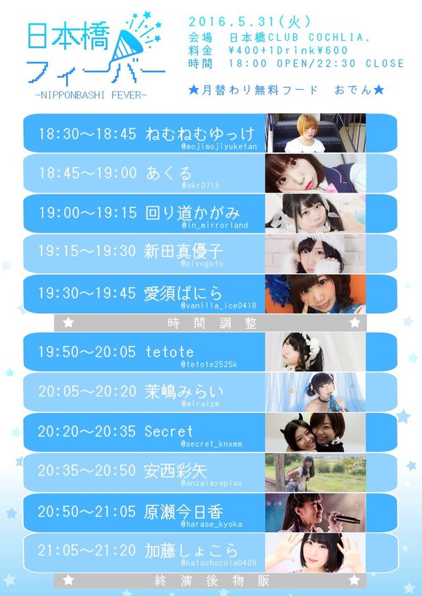 近野なあこ@6/6 生誕祭 2016年05月31日 出番は20:20~です🌟 https://t.co/Yd2M... 出番は20:20~です🌟 https://t.co/Yd2MJuXE2w 「近野なあこ@6/6 生誕祭」カテゴリの最新記事 前の記事: 今日はコクリアで日本橋フィーバーやで!ひっさしぶりのライブや... 次の記事: いずむカフェオープンしました! 日替わりは チキンカツ定食... コメント コメントフォーム 名前 コメント 評価する リセット リセット 顔 星 投稿する 情報を記憶